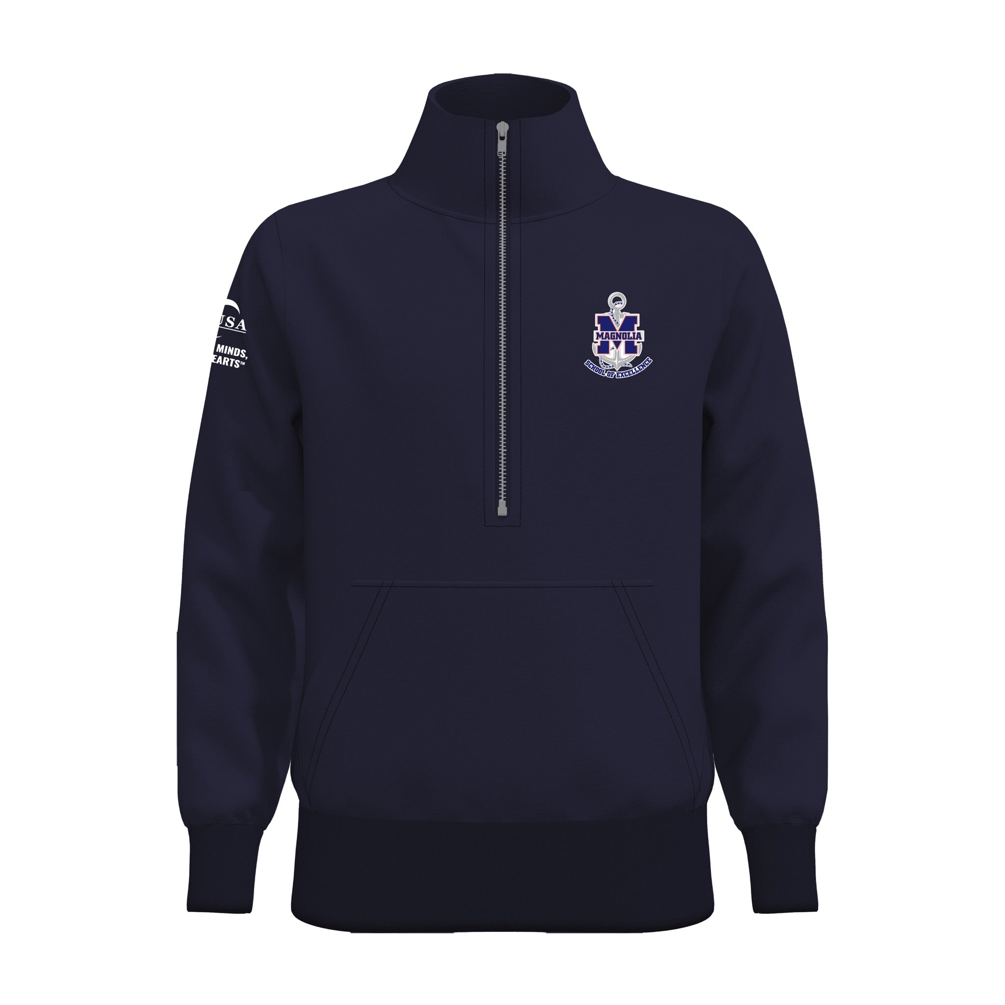 The new HALF ZIP JACKET 2.0 combines comfortable design, durability, and functionality. It features a one-way front metallic YKK zipper for long-lasting use and ease of wear. Ribbed cuffs and waistband add comfort and warmth, while the front kangaroo pouch provides practical style.